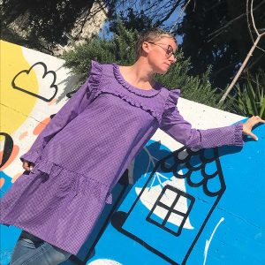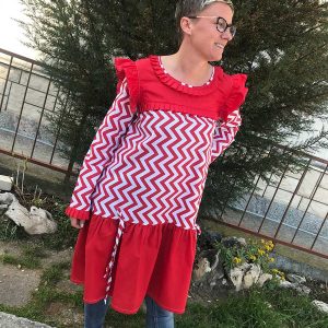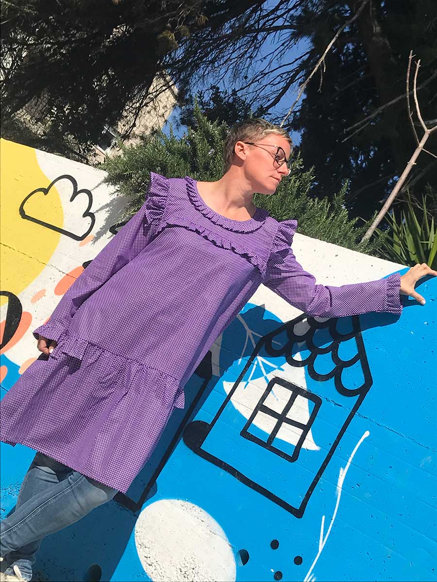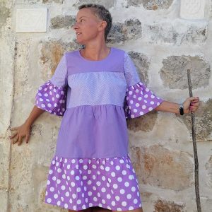 Ljubičasta Pamučna Haljina-Tunika s Profinjenim Volančićima za Blagdane